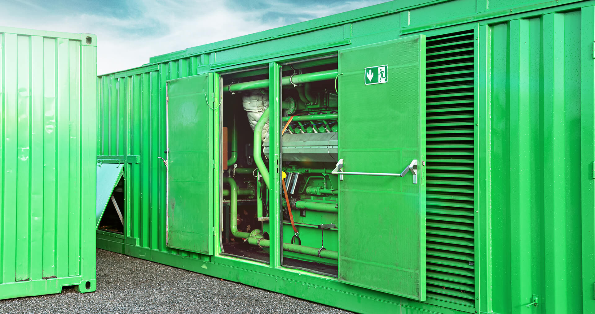 Unser flexibles Miet-BHKW im Containerformat bietet einen sorgfältig revidierten und makellos gepflegten Jenbacher JMS320 in der C25 Version.
